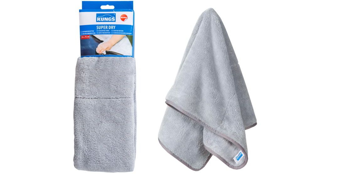 Peškir za sušenje automobila je napravljen od mikrovlakana. Apsorbuje do pet puta svoje težine u vodi. Kungs Peškir za auto Super Dry je veliki tako da je sušenje celog automobila veoma brzo. Peškir je prijatno mekan za upotrebu i ne grebe farbu automobila.